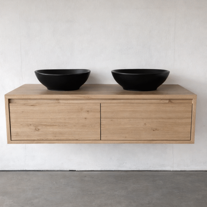 Een wastafelmeubel / badkamermeubel is een essentieel onderdeel van elke badkamer. Het biedt niet alleen een functionele opslagruimte, maar draagt ook bij aan de algehele esthetiek van de ruimte. Het eerste aspect waar we naar kijken zijn de afmetingen. Een wastafelmeubel kan variëren in grootte, afhankelijk van de beschikbare ruimte in de badkamer. Daarnaast is het materiaal van het meubel van groot belang. Vaak worden wastafelmeubels gemaakt van duurzame materialen zoals hout wat bestand is tegen vocht en slijtage. De kleur van het meubel kan ook een belangrijke rol spelen bij het creëren van de gewenste sfeer in de badkamer. Een populaire keuze is bijvoorbeeld een zwart badkamermeubel of een massief eiken badkamermeubel dat een moderne en luxueuze uitstraling geeft. Tot slot is het design van het wastafelmeubel van groot belang. Er zijn verschillende ontwerpen beschikbaar, zoals strakke en minimalistische modellen of juist meer klassieke en gedetailleerde ontwerpen. Afhankelijk van de stijl van de badkamer kan er gekozen worden voor een wastafelmeubel dat perfect aansluit bij de rest van het interieur. Of je nu op zoek bent naar een losstaand badkamermeubel of een complete badkamermeubel set, er is altijd een optie die past bij jouw persoonlijke voorkeuren en behoeften. Wij maken alles op maat, andere ideeën en modellen zijn op aanvraag mogelijk!