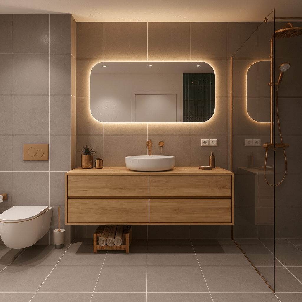 Badkamermeubel met 4 lades greeploos vanuit het midden massief eiken