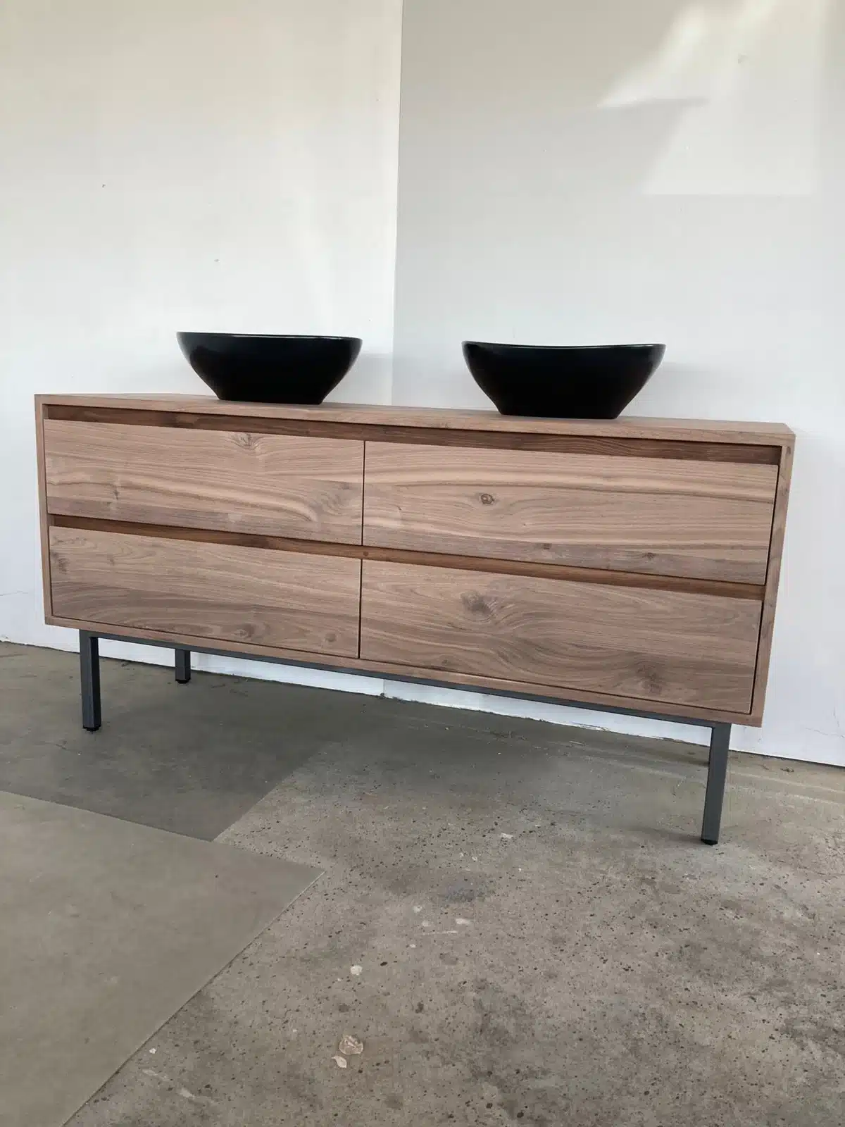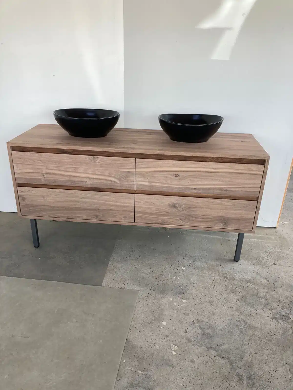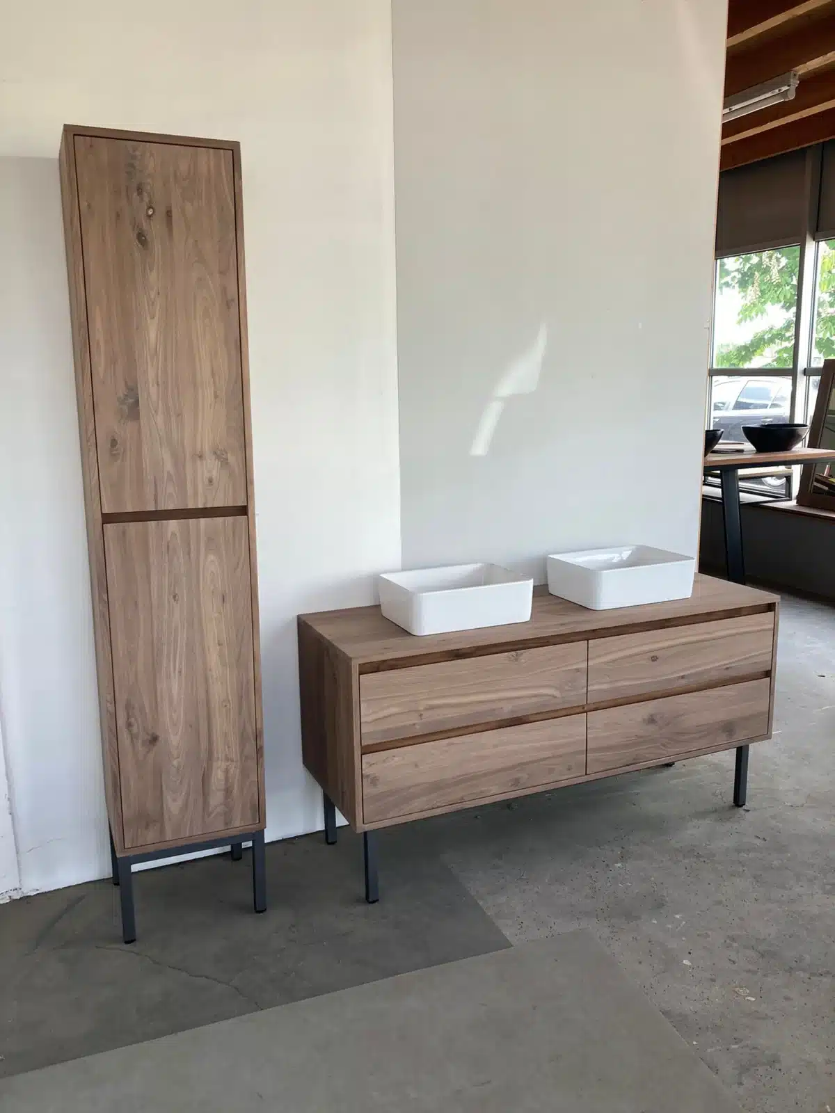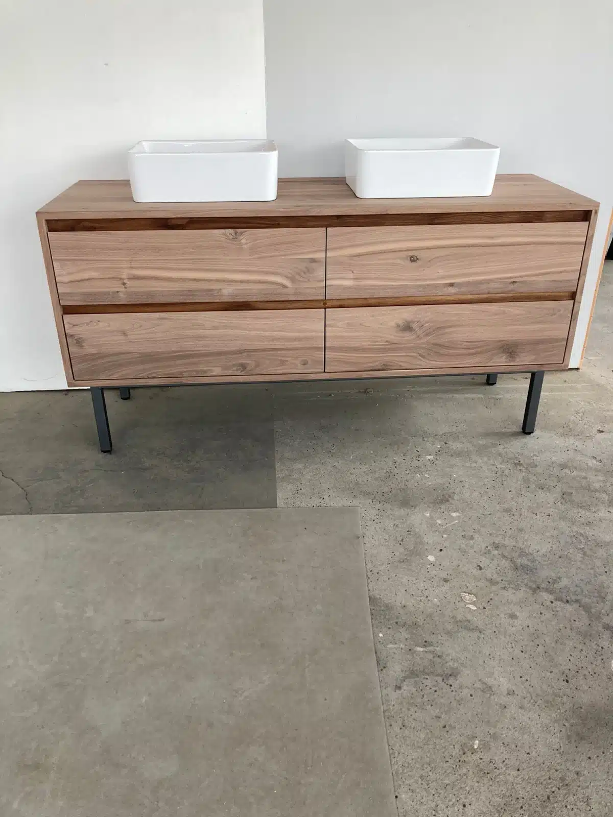 Badmeubel noten op stalen onderstel met 4 lades | Amsterdam