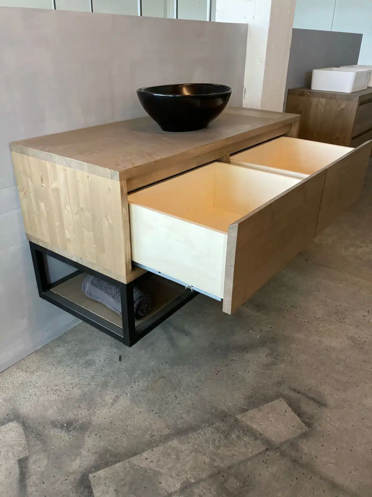 Zwevend badmeubel met 2 hoge lades en stalen handdoekrek | Leeuwarden